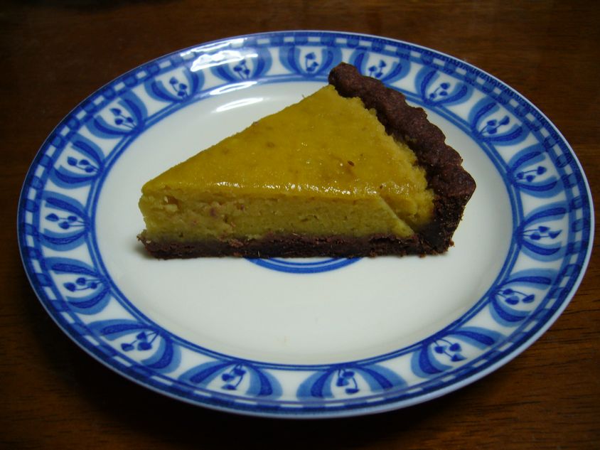 芋部分は甘すぎずサッパリしてて、タルト生地はチョコ味(チョコレートチップ入り)でとても美味しかったので、また作ってくれと頼んだところ