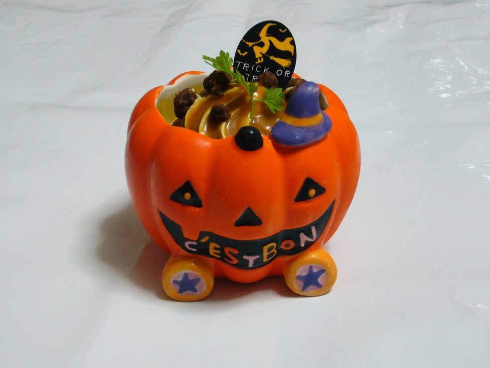 かぼちゃムースの固いやつ(?)の中に、甘いかぼちゃのダイスが入ってました。美味いけど甘かった!