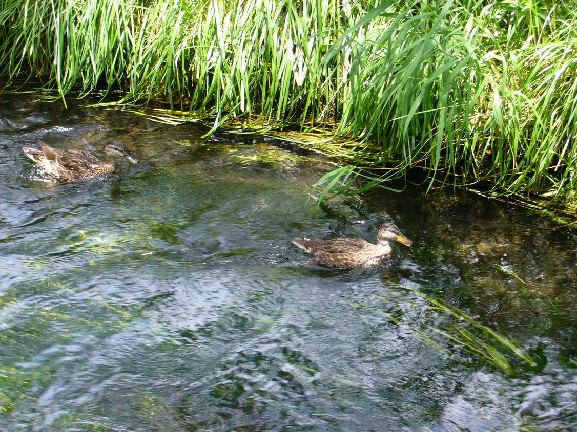 左:忍野八海で見たカルガモ。雛がだいぶ育っていたのですが(笑)、流れに逆らって泳いでるのが可愛かったです。というか、泉より観光客の連れているペットのワンちゃんたちにばかり目が行ってしまってww